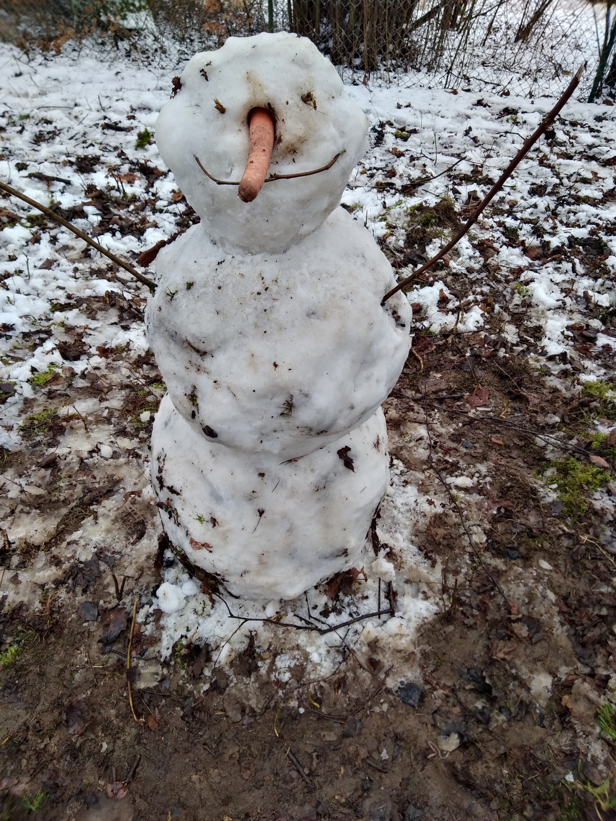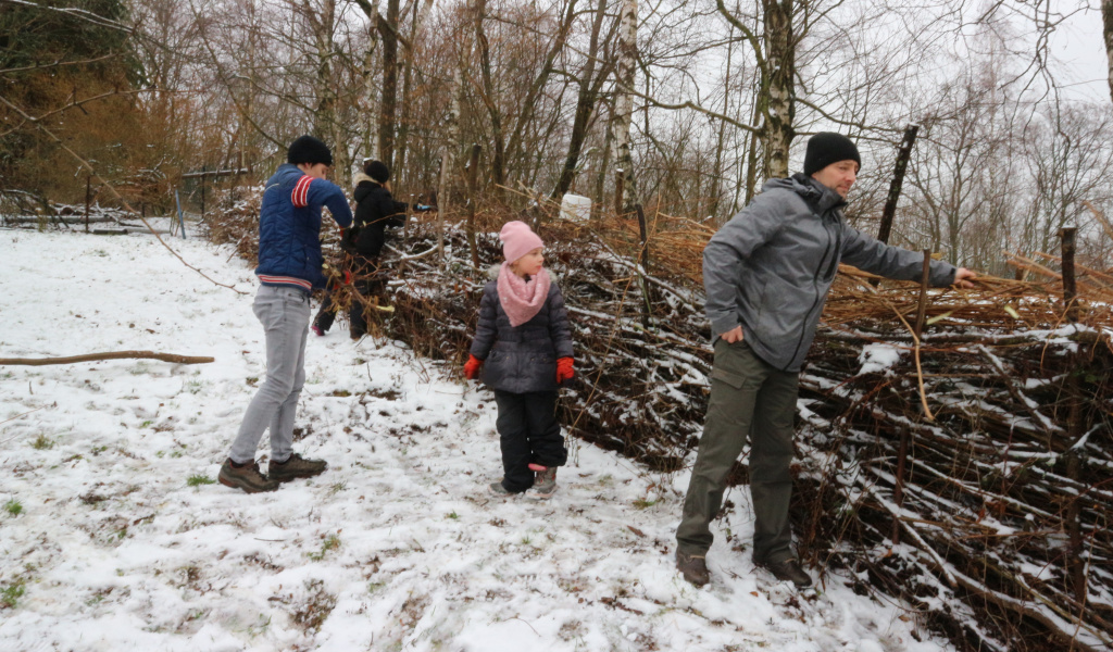 Und es waren auch wieder große und kleine Kinder dabei, die zum einen fleißig mitgeholfen haben unsere Benjeshecke zu füttern aber auch große Freude hatten, endlich einen Schneemann bauen zu können. Dem hat das offensichtlich auch gefallen.